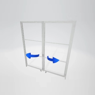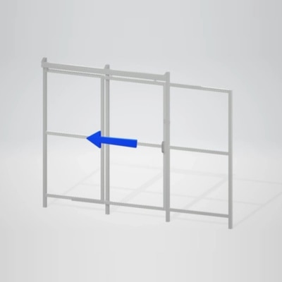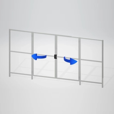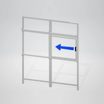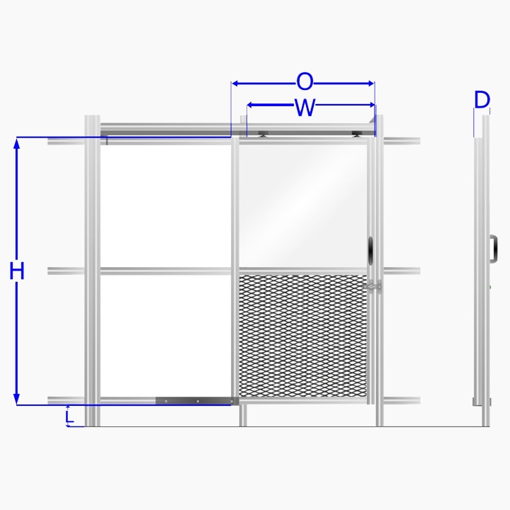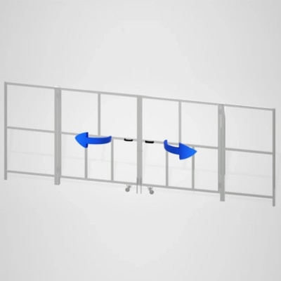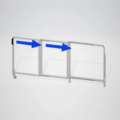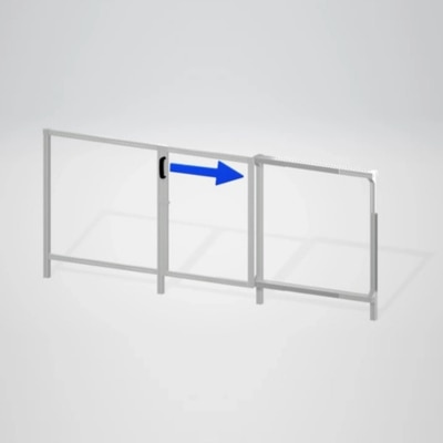 低層多段スライド式ドアは、扉の上部及び下部にスライドレール(干渉物)がない低層において、人・物が行き来できることを特徴としたスライド式ドアです。安全柵に多段スライドを設置することで開口寸法を広げることも可能とします。