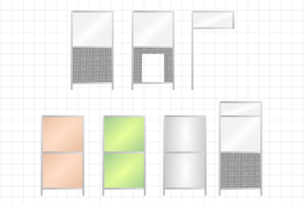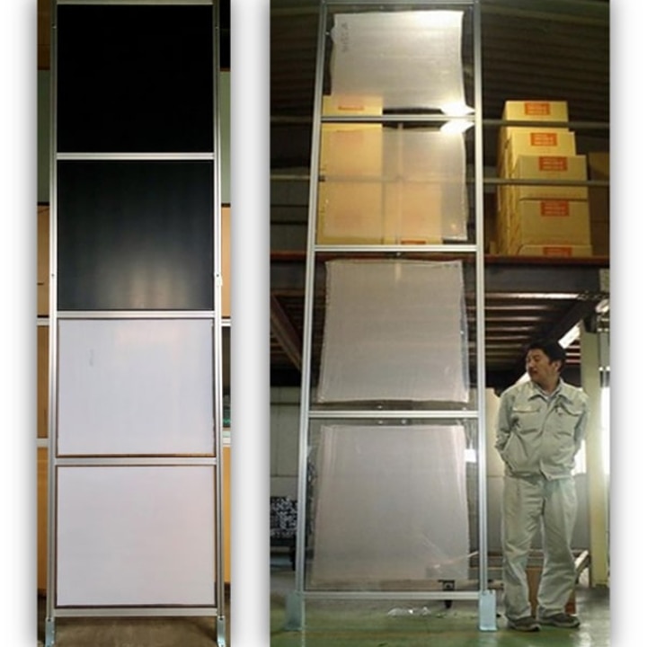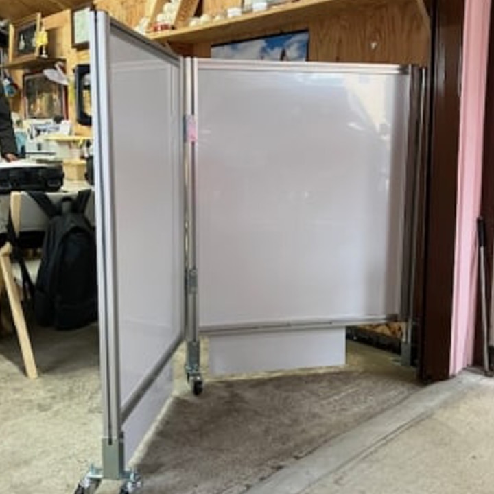 折りたたみ衝立とは、空間の仕切り・目隠し・風避けなどに使用できるパーテーションです。パネルの選択も可能で、ホワイトボードとしてもご利用いただけます。