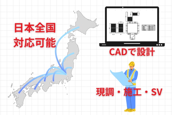 日本全国の協力会社と連携し、現地調査から設計・施工まで一貫して対応可能です。